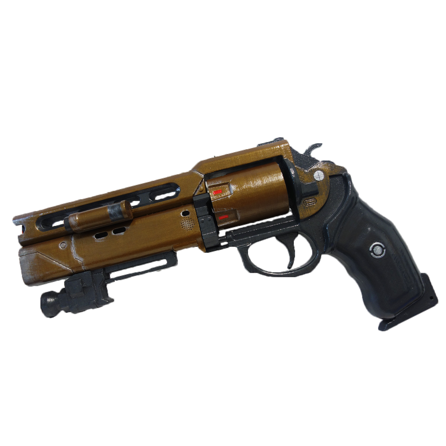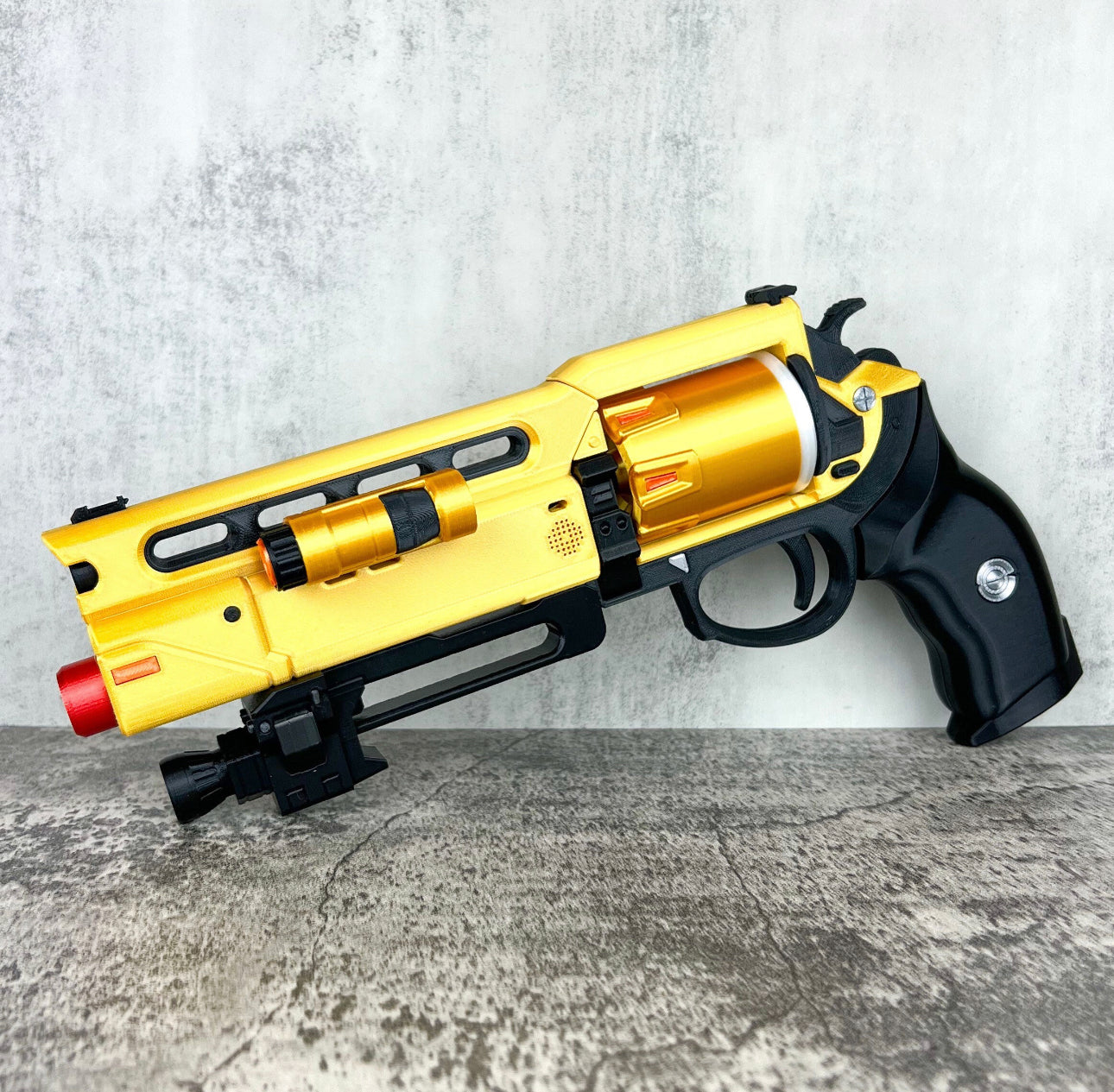 This gun is 3D printed of PLA plastic (human-friendly material) and a metal Frame, assembled and sanded, hand painted with acrylic paint and varnished with a satin/glossy finish, so the paint could remain as long as possible. These Are All Custom Made and Not Cheaply made.