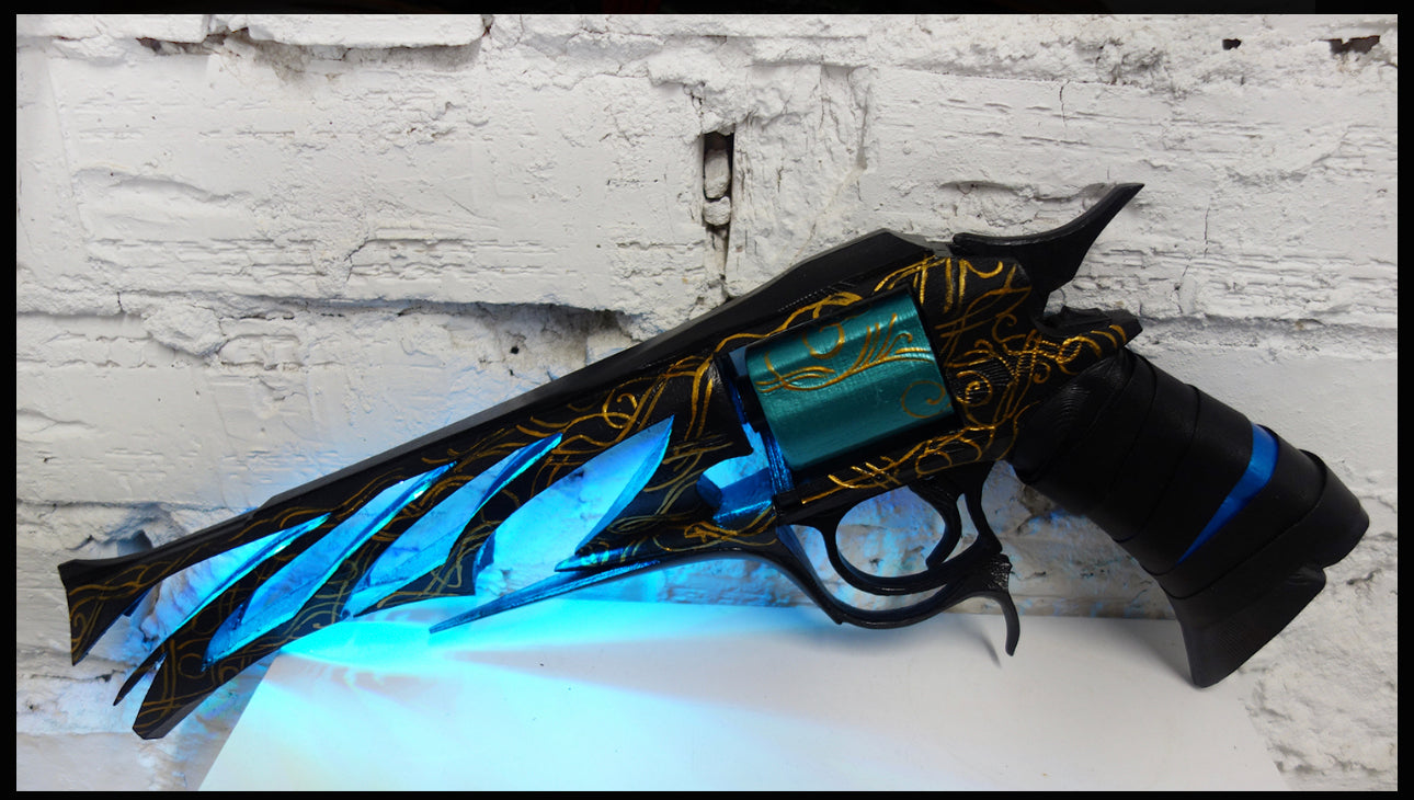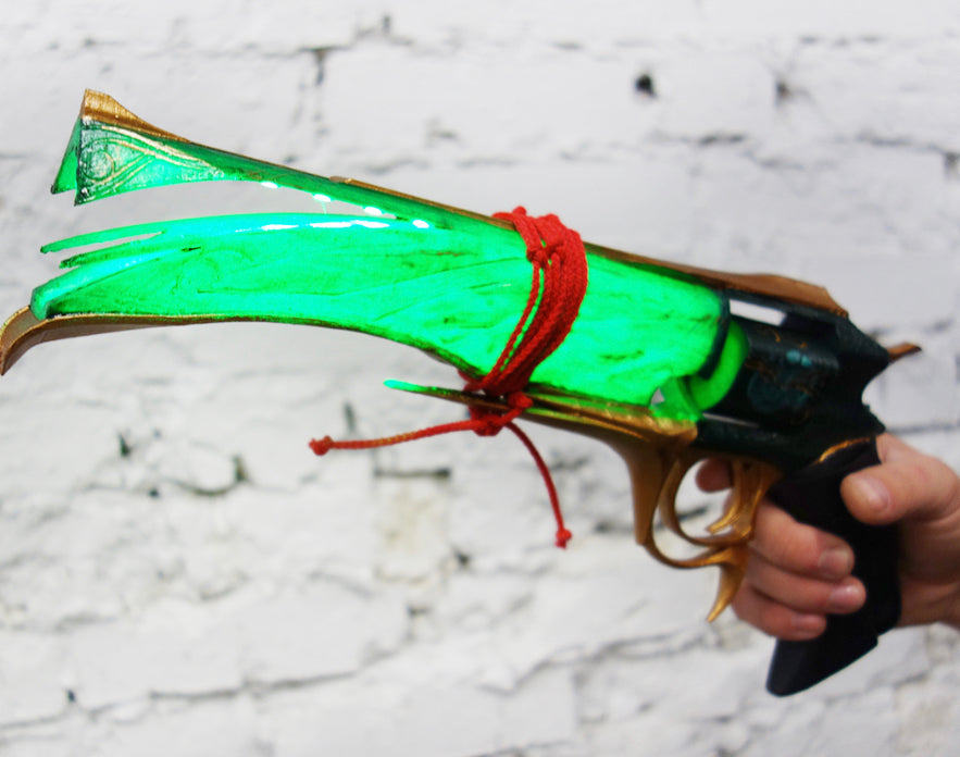 This gun is 3D printed of PLA plastic (human-friendly material) and a metal Frame, assembled and sanded, hand painted with acrylic paint and varnished with a satin/glossy finish, so the paint could remain as long as possible. These Are All Custom Made and Not Cheaply made.